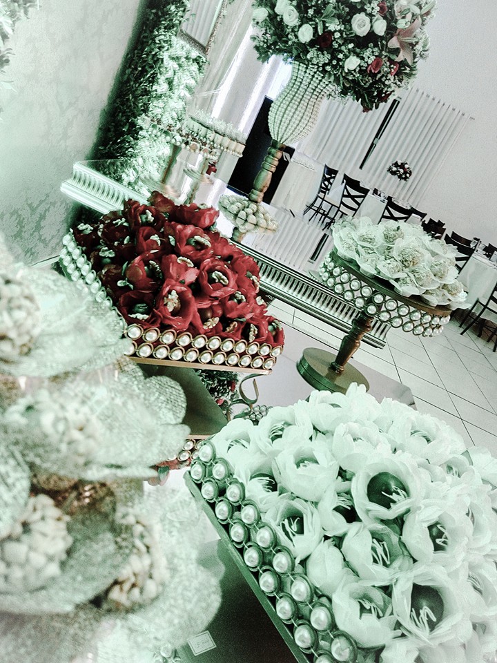 Arranjos com flores nobres,Mesas de doces espelhadas